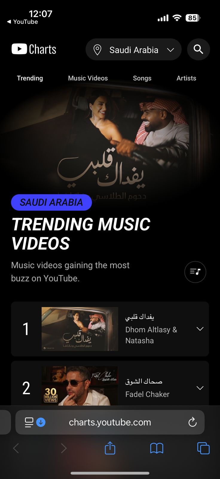 طرح الفنان دحوم الطلاسي والفنانة ناتاشا دويتو غنائياً جديداً بعنوان «يفداك قلبي»، حيث حقق الفيديو كليب منذ صدوره انتشاراً لافتاً عبر المنصات الرقمية وحصل على مليون مشاهدة خلال خمس ايام منذ اطلاقه.العمل لاقى تفاعلاً واسعاً من الجمهور، الذي أشاد بجمال الأغنية والتناغم الواضح بين صوتي الطلاسي وناتاشا، ليصبح يفداك قلبي من أبرز الإصدارات الفنية التي تصدرت حديث مواقع التواصل في الأيام الاخيرة حيث تصدر ترند يوتويب السعودية بعد منافسه شرسة في تعالي ارقام الترند مع الفنان فضل شاكر ليصبح الديو بالمرتبه الاولى ترند #1 باليوتيوب والمرتبه 2 لاغنيه صحاك الشوق للفنان فضل شاكر