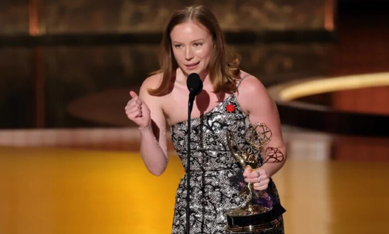 وقد أثارت الممثلة الأمريكية هانا إينبيندر، الفائزة بجائزة أفضل ممثلة مساعدة في مسلسل كوميدي، جدلاً واسعًا خلال الحفل بعدما اختتمت خطابها على المسرح بعبارة “فلسطين حرة” قبل أن تقاطعها الموسيقى.