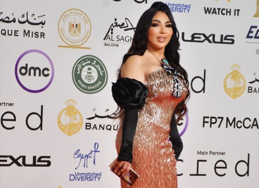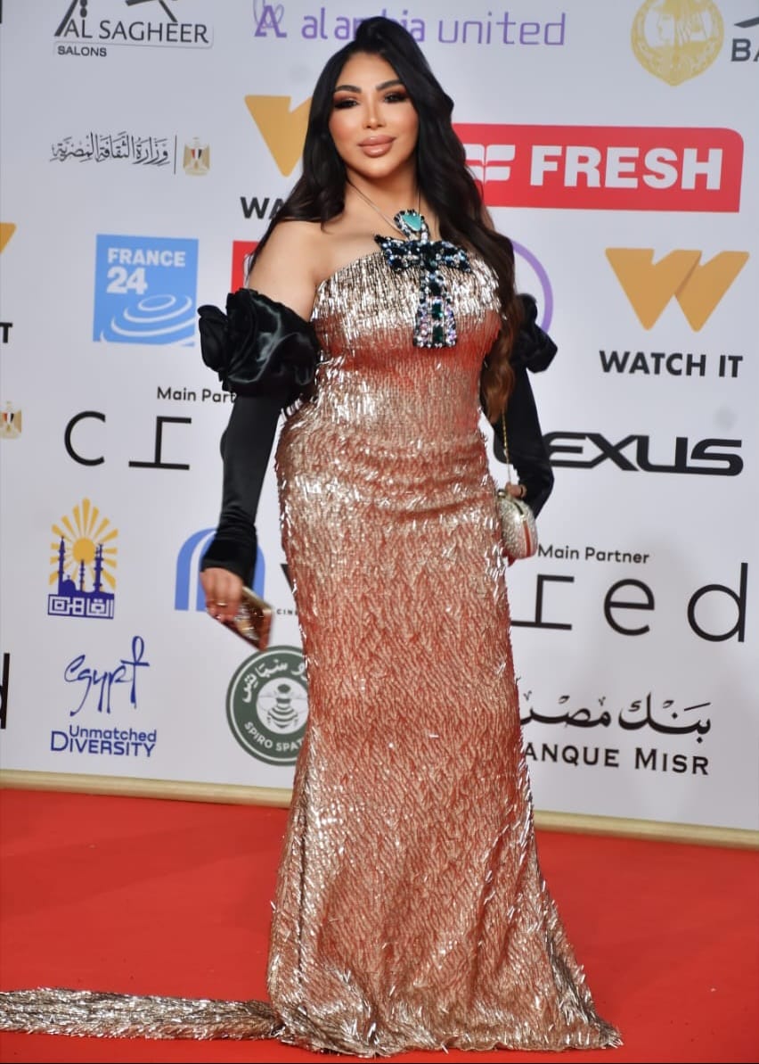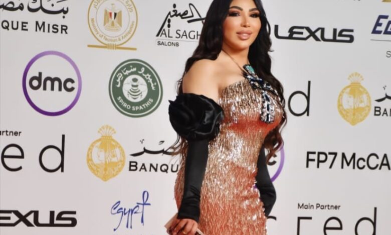 إطلالة فرعونية راقية.. غادة إبراهيم تتألق بـ”مفتاح الحياة” على السجادة الحمراء لمهرجان القاهرة