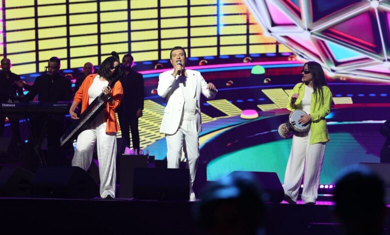 حقق الفنان إيهاب توفيق حضورا قويا على المسرح، حيث أبهر الجمهور بأدائه الطربي المميز وأغانيه القديمة والمعروفة مثل “سحراني”، “ملهمش في الطيب”، “تترجى فيا”، “عامل عاملة”، “أحلى منهم”، “مشتاق”، “هدي القمر”، “بحبك يا أسمراني”، إلى جانب أغاني أخرى.