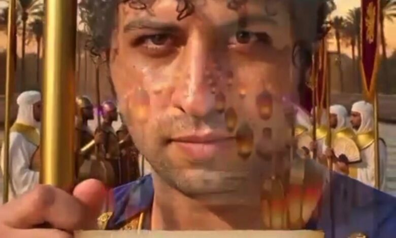 ويشهد المشهد الأول تحول الشخصية من جلباب أبيض بسيط إلى زي ملكي مصري قديم، مع الحفاظ على ملامح الوجه مطابقة تمامًا للصورة المرجعية للبطل، في خطوة رمزية تعكس القوة الداخلية والنقاء.