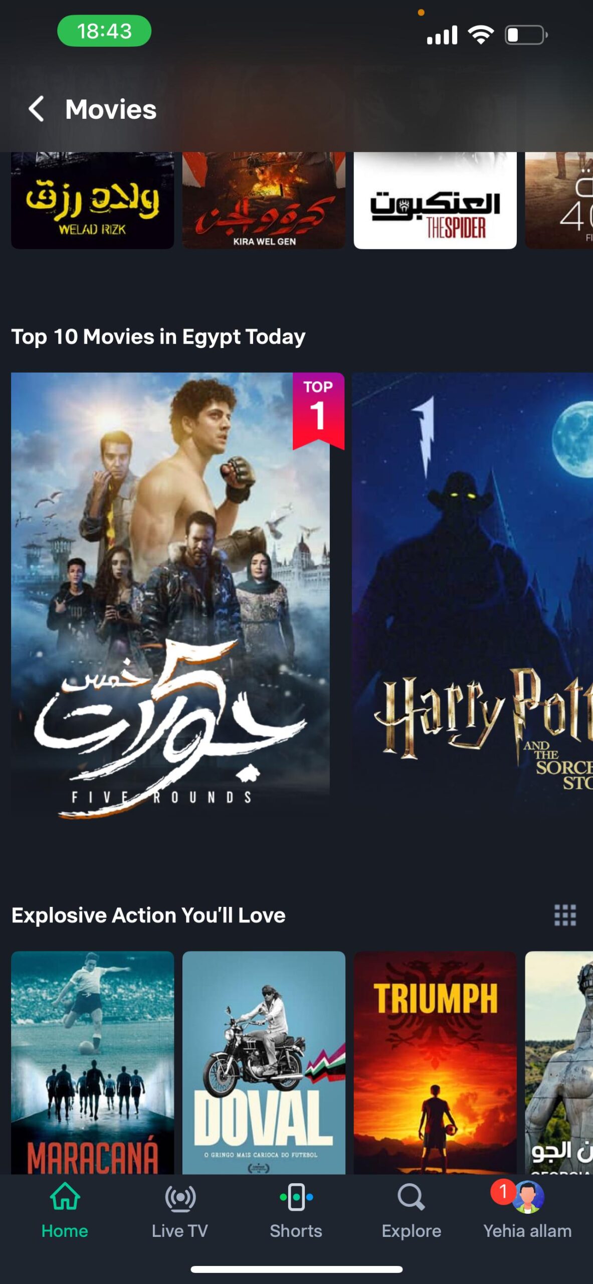 تصدر فيلم 5 جولات قائمة الأكثر مشاهدة على منصة شاهد فى مصر، وهو من بطولة آدم الشرقاوي، ونور النبوي، وماجد المصري، وداليا شوقي، وعايدة الأيوبي حيث احتل 5 جولات المركز الأول، من أصل 10 مراكز للأعمال الأعلى مشاهدة في مصر.