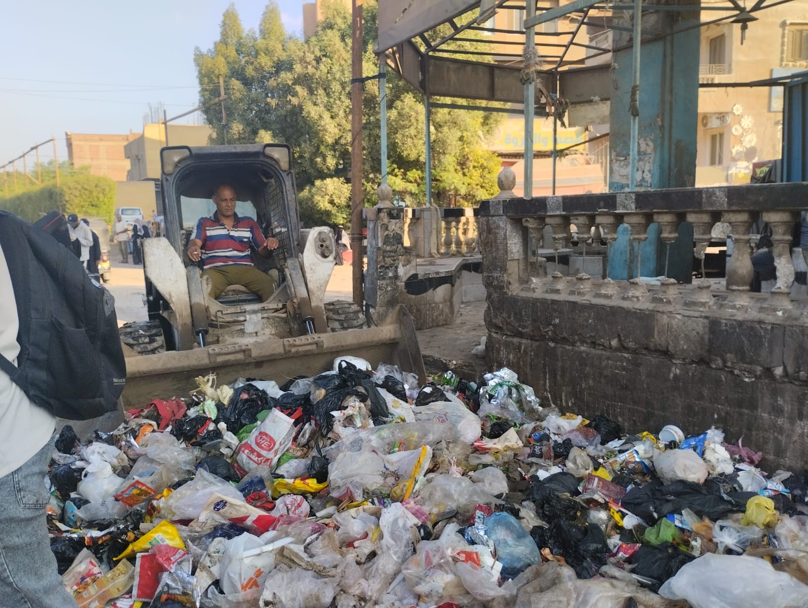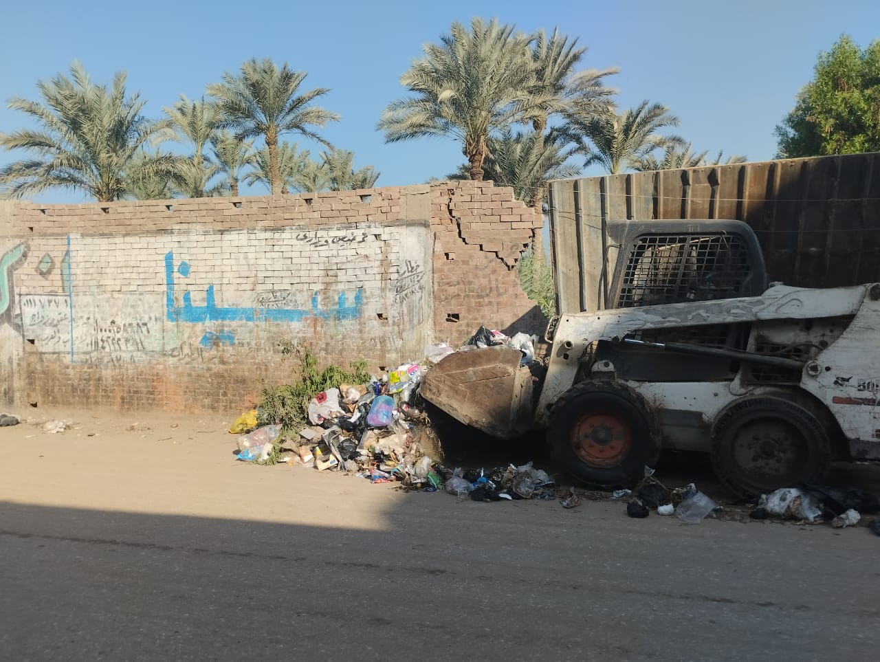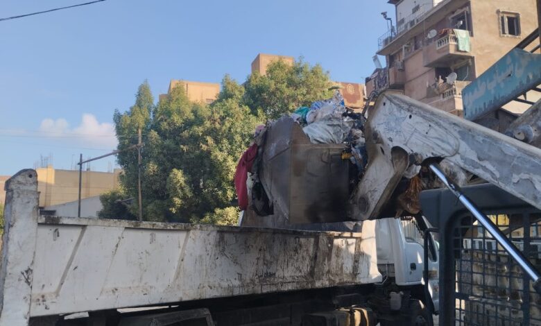 رئيس الوحدة المحلية بالمنوات جنوب الجيزة يُتابع عملية رفع القمامة من قرية طموه