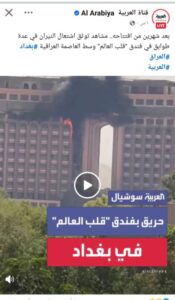 ونشر عفارة عبر حساباته الرسمية على مواقع التواصل الاجتماعي منشورًا أكد فيه السيطرة الكاملة على الحريق في وقت قياسي، مشددًا على أن الفندق سيواصل تقديم خدماته وسيبقى واجهة من واجهات بغداد الجميلة رغم كل التحديات، وجاء في نص منشوره: