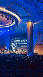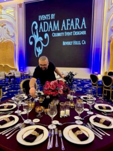وقد نظّم آدم عفارة على مدار مسيرته المهنية العديد من حفلات الزفاف الفاخرة والمناسبات العالمية، لعدد من أبرز مشاهير الفن مثل بيونسيه، جينيفر لوبيز، باريس هيلتون، ليدي غاغا، وكيم كارداشيان، كما حصل على أكثر من 47 جائزة دولية في مجال تصميم وتنظيم الحفلات. ويُعد من الشخصيات المؤثرة في عالم الفعاليات الفاخرة، حيث يشرف اليوم على إطلاق سلسلة من المشاريع الحصرية في العراق والشرق الأوسط.
