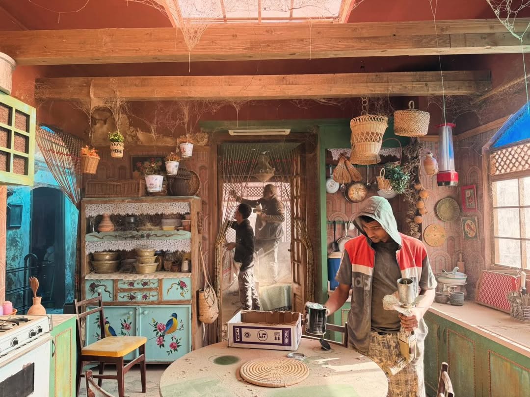 وكشفت مهندسة الديكور نادية عادل المليجي عبر حسابها على انستجرام، عن صور للحارة ولشقة عباس وكيف أجرت عليها أكثر من تغيير، لتظهر في مشاهد الفلاش باك التي تجمع بين عباس وزوجته وأطفاله، ثم بعد سجنه وتحولها إلى مكان موحش تغطيه الأتربة وتنتشر في كل جوانبه خيوط العنكبوت، ويهجره الدفء والابتسامة.