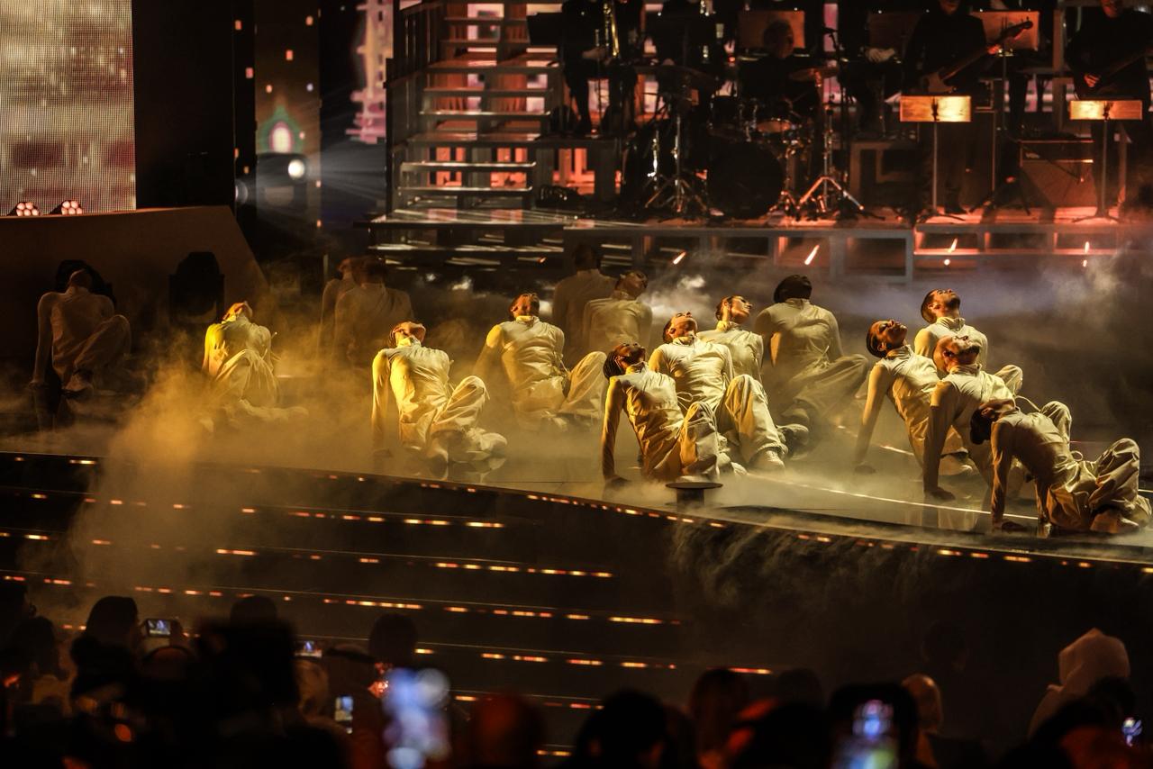 وبعد ذلك، عُزف السلام الملكي السعودي، ثم انتقلت الأمسية نحو العرض الافتتاحي الترفيهي الذي شاركت فيه المغنية العالمية “كايتي بيري” ضمن فقرة تمهيدية مميزة شكلت تجربة بصرية فريدة، وجمعت عناصر الأوركسترا والراقصين والمؤثرات الخاصة، في لوحة فنية متكاملة اعتمدت على الإضاءة الديناميكية والمؤثرات البصرية والحضور المسرحي اللافت، بما عكس ضخامة الإنتاج ودقة الإعداد لهذه الليلة.