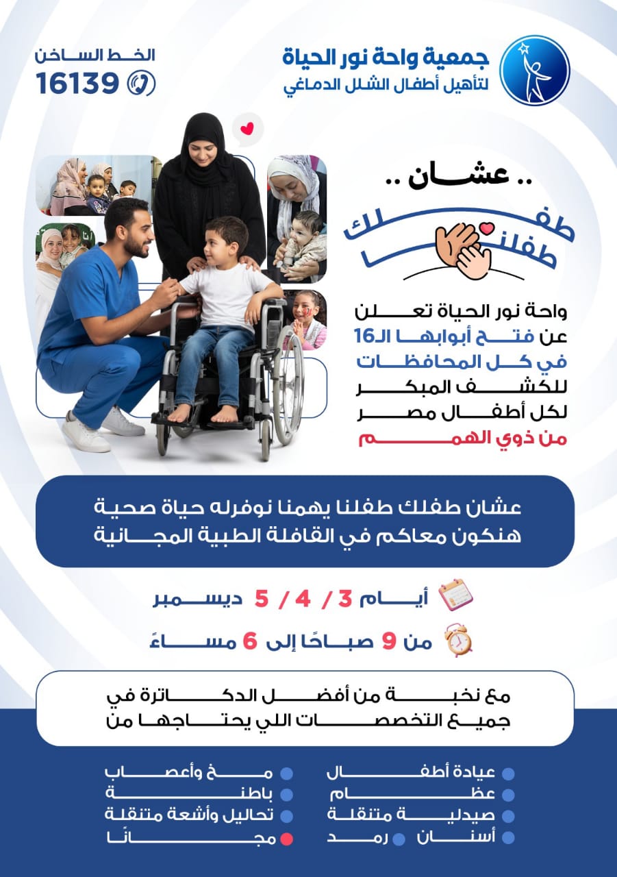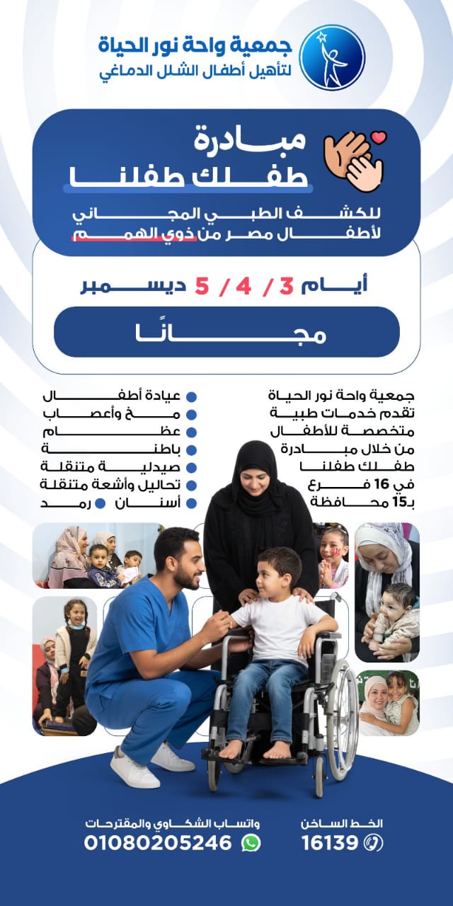وأكدت واحة نور الحياة أن هدف المبادرة هو ضمان حياة صحية أفضل لكل طفل، من خلال الكشف المبكر الذي يسهم في تغيير مستقبل الأطفال ذوي القدرات الخاصة، وإتاحة خدمات طبية مجانية وشاملة لجميع الأسر دون استثناء.